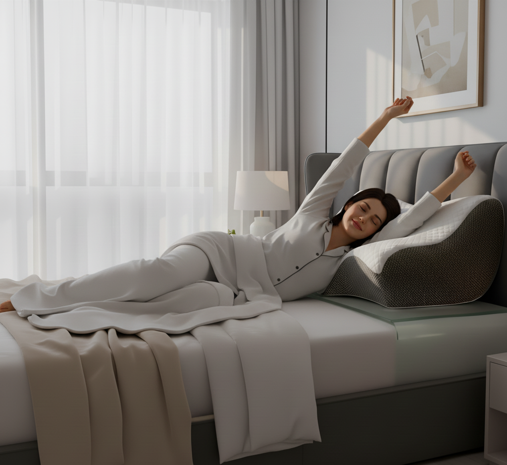 C’est ainsi qu’est né notre oreiller ergonomique, conçu pour épouser parfaitement la nuque et la colonne, soulager les tensions et transformer chaque nuit en un moment de détente absolue.